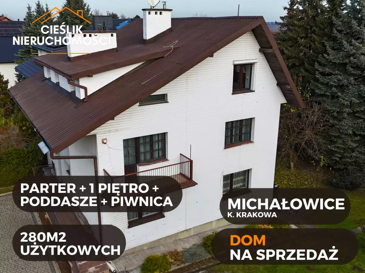 Na sprzedaż duży, przestronny dom murowany położony w Michałowicach koło Krakowa składający się z 2 pięter i piwnicy. Dom o pow. użytkowej około 280m2. Atrakcyjna nieruchomość nie tylko dla osób prywatnych, ale także dla inwestorów.